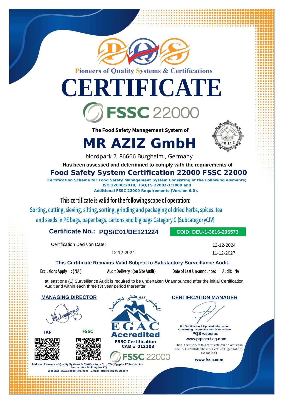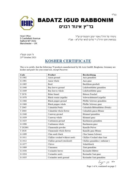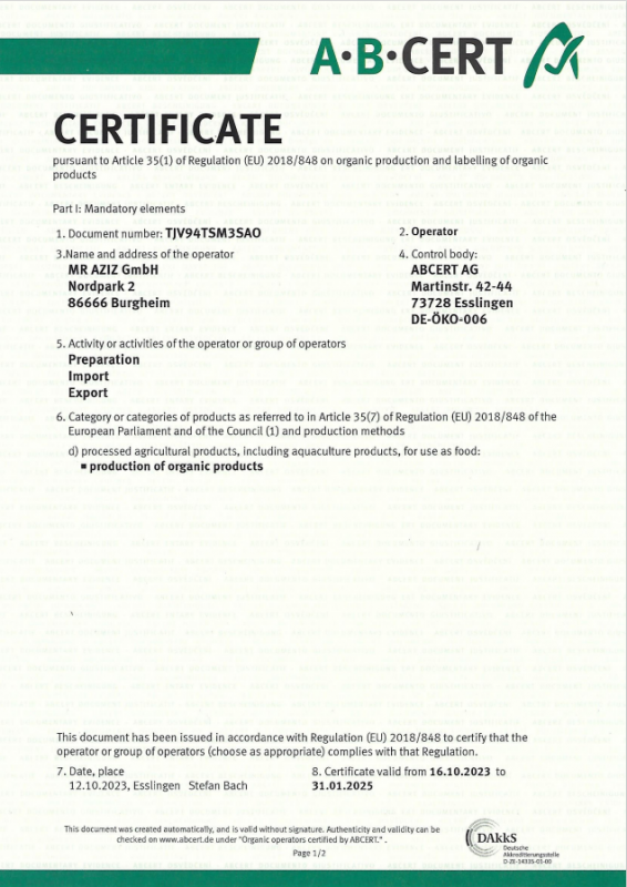 At Mr. Aziz GmbH, we recognize that every customer has unique requirements. To meet this diversity of needs, we provide our products in various formats — whole, ground, or crushed — and at different purity levels. Whether you are looking for certified organic products, EU-compliant options, or goods produced within conventional pesticide residue limits, our facilities are equipped to accommodate your preferences.
