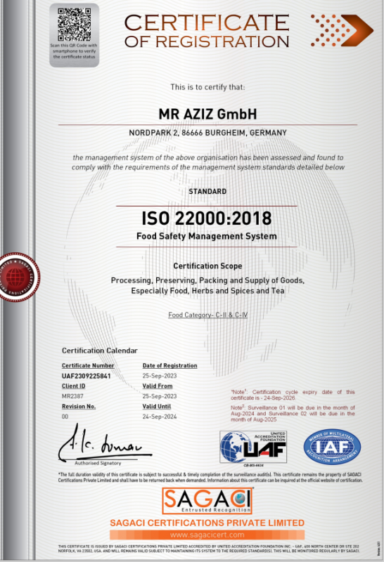 Mr. Aziz GmbH takes pride in promoting sustainability, ethical sourcing, and global quality standards — ensuring every spice, herb, and tea reflects our commitment to people and the planet.