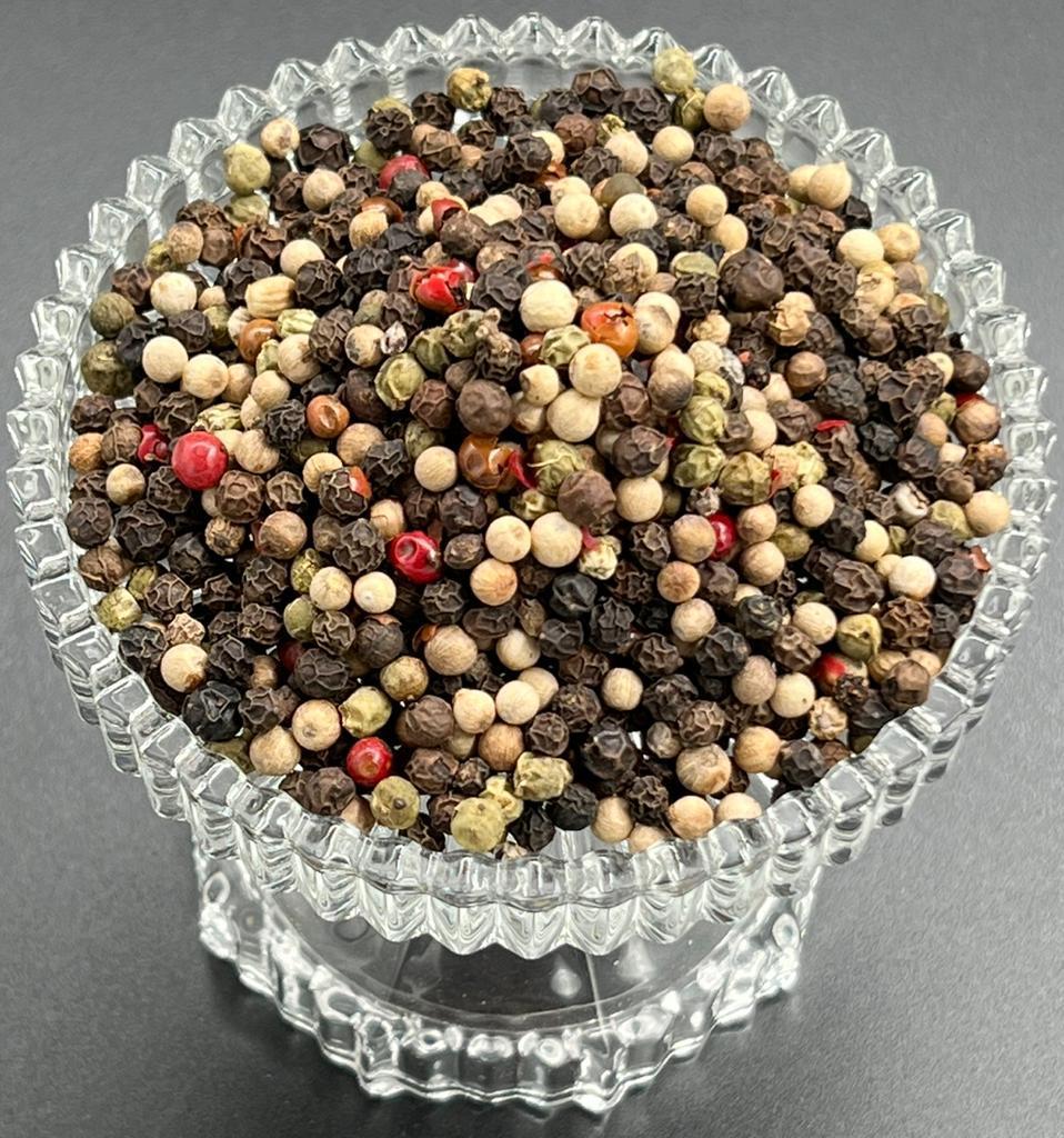 Black peppercorns are also contained in the colorful pepper. However, the fresh nuances of green pepper and the very hot white pepper mix with the sharp aroma. Many pepper mixtures also contain pink berries, which are often referred to as pink pepper, but have nothing to do with standard pepper – neither botanically nor in terms of taste. Because they tend to contain slightly sweet notes.